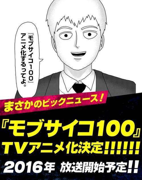 Situs komik web Ura Sunday baru-baru ini mengumumkan bahwa komik Mob Psycho 100 karya ONE akan diadaptasi ke dalam anime oleh studio BONES. Jika tidak ada halangan, maka anime ini akan hadir tahun depan.