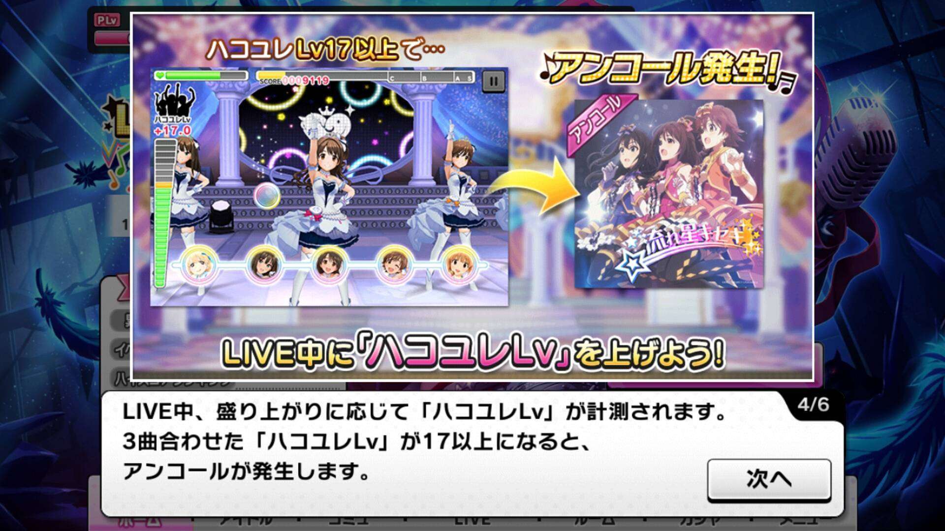 Seperti Vocal Groove kemarin, saat memainkan medley, pemain akan mendapatkan applause level. Apabila Applause level telah mencapai titik yang ditentukan(lv 17), pemain dapat memainkan lagu encore yaitu Nagareboshi Kiseki oleh unit New Generations yang dimotori oleh Uzuki Shimamura, Rin Shibuya serta Mio Honda!. Jika pemain berhasil menuntaskan Applause level pada tingkat Master, maka akan dapat memainkan encore dengan tingkat kesulitan Master+.