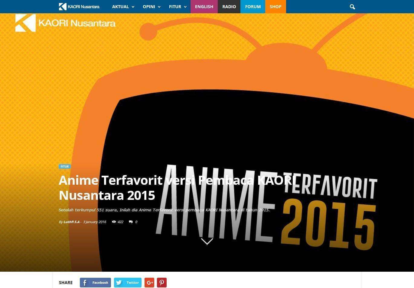 Berita-berita flagship dari rubrik Perkeretaapian, kolom Opini, dan ulasan-ulasan pilihan tampil dan tidak lagi tenggelam. Sementara itu pada halaman artikel, berita kini dapat dientri dengan tampilan yang berbeda dari artikel lainnya, sebagaimana yang terlihat pada entri Anime Terbaik 2015 versi KAORI berikut.