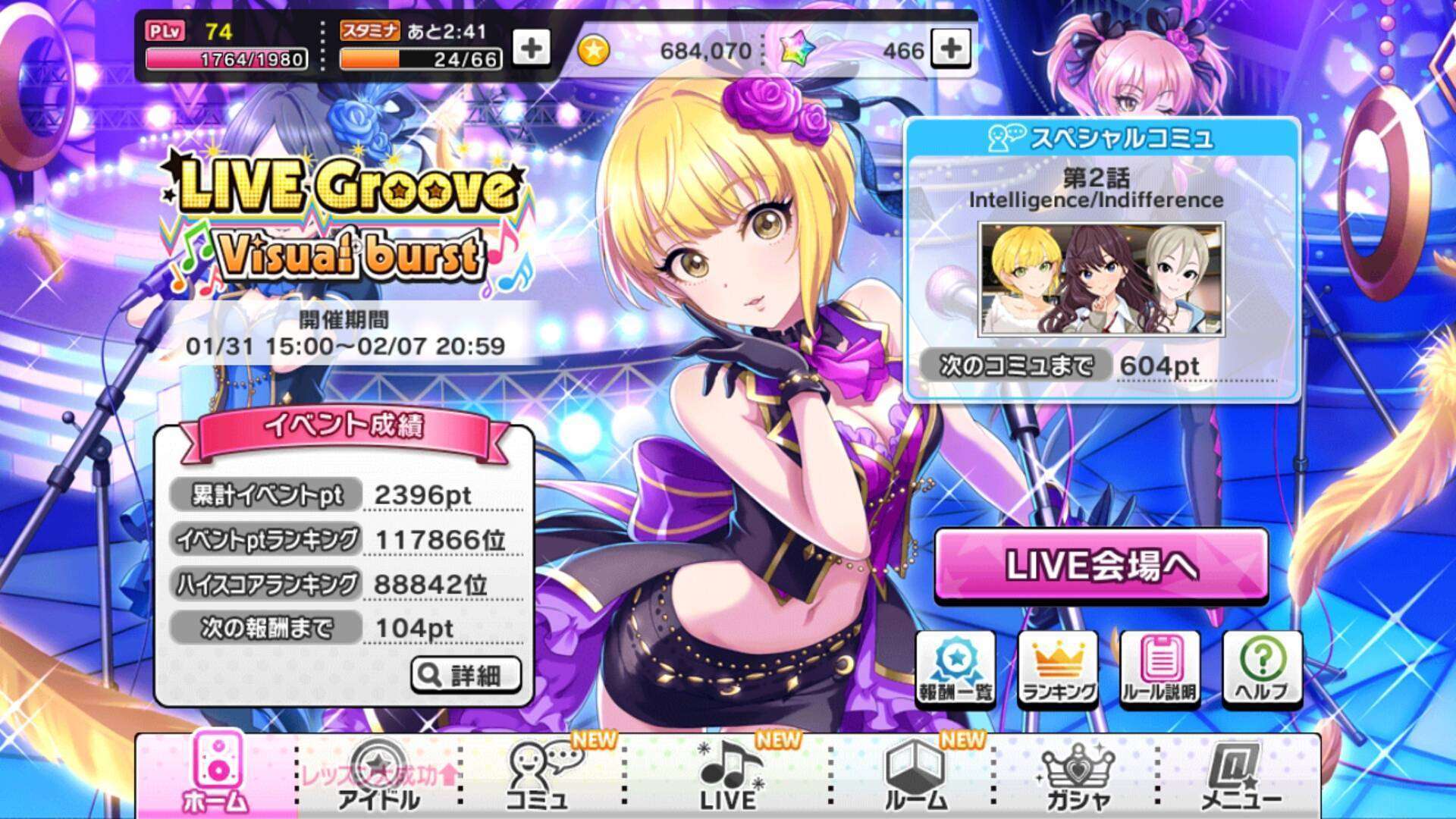Seperti sebelumnya, event Live Groove adalah in-game event di mana pemain bisa memainkan 4 lagu sekaligus secara medley. Namun demikian, berbeda dengan Groove sebelumnya, Groove kali ini pemain mendapat bonus status Visual hingga 150%.