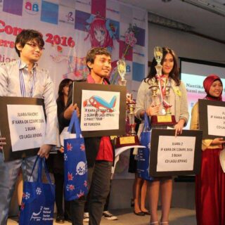 Setelah seluruh peserta Mini Cosplay Competition telah unjuk kebolehan diatas panggung, saatnya pengumuman pemenang kontes cosplay ini. Ada 3 peserta yang terpilih sebagai cosplayer terfavorit pada kontes ini, yakni peserta yang bercosplay sebagai Edward Elric dari seri Fullmetal Alchemist, peserta yang cosplay sebagai Kamen Rider, dan juga satu peserta yang tampil dengan kostum original buatannya sendiri.