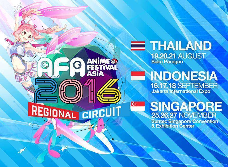 Melalui akun media sosial resminya, ANIME FESTIVAL ASIA (AFA) mengumumkan bahwa perhelatan AFAID (Anime Festival Asia Indonesia) 2016 akan digelar pada tanggal 16-18 September 2015.