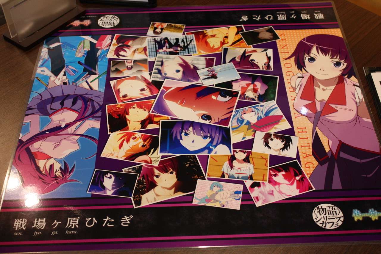 Kafe khusus bertema Bakemonogatari telah dibuka di Akihabara. Tidak main-main, di kafe ini semua detail digarap dengan serius, termasuk taplak mejanya.