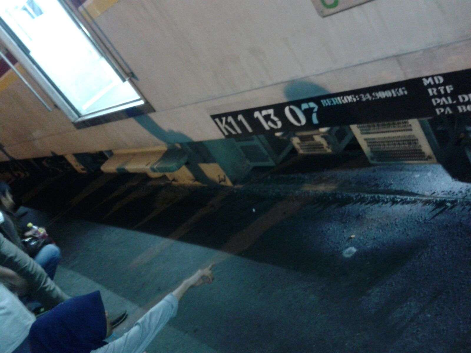 Gangguan ini disebabkan terjadinya amblas pada rel, sehingga saat dilintasi, kereta akan sangat miring. Beberapa komponen penting kereta 6711 (K1 1 13 07) terbentur permukaan aspal yang rendah dan dikhawatirkan mengalami kerusakan. Penumpang yang memenuhi KRL langsung dievakuasi keluar dari kereta guna menghindari hal hal yang tidak diinginkan.