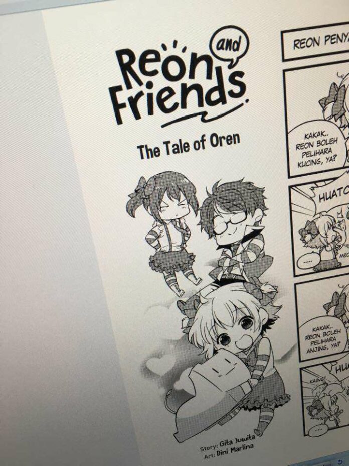Majalah komik re:ON Comics baru-baru ini telah mengumumkan bahwa Reon, sosok gadis berambut merah jambu yang merupakan maskot dari majalah komik tersebut kini akan punya komiknya sendiri. Dengan judul Reon and Friends: The Tale of Oren, komik yang ditulis oleh Gita Juwita (yang tak lain dan tak bukan adalah editor re:ON Comics) dengan ilustrasi oleh Dini Marlina (ilustrator daro komik Math), sang maskot bersama keluarganya yang terdiri dari kedua kakaknya yaitu Reyna dan Reno, juga Oren sang peliharaannya ini akan menyambut pembaca pada re:ON Comics edisi ke 20.