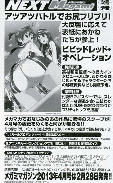 Majalah Megami edisi Maret 2013 menjanjikan konten “pantat” yang lebih menarik, yang akan diterbitkan pada akhir bulan Februari mendatang. Selain itu, promo episode ke-4 dari seri anime ini pun juga menjanjikan “pantat” yang lebih banyak.