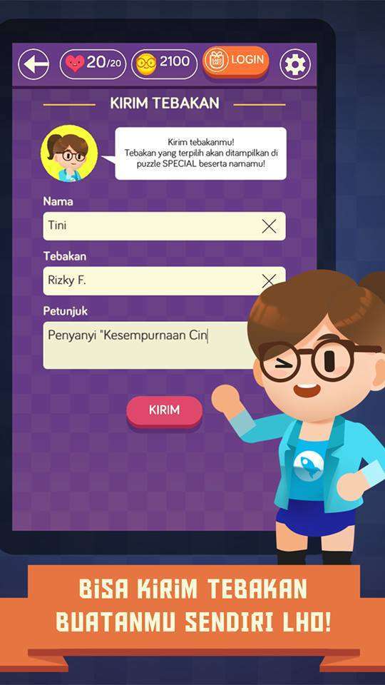 Sebagaimana judulnya, pada game ini pemain akan dituntut untuk menebak kata-kata yang disajikan.