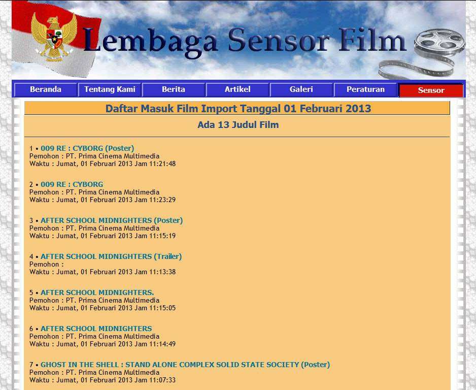 Lembaga Sensor Film (LSF), badan yang mengurus segala tayangan yang akan ditayangkan ke publik, siang ini menampilkan entri sejumlah film anime yang akan masuk pemeriksaan LSF.