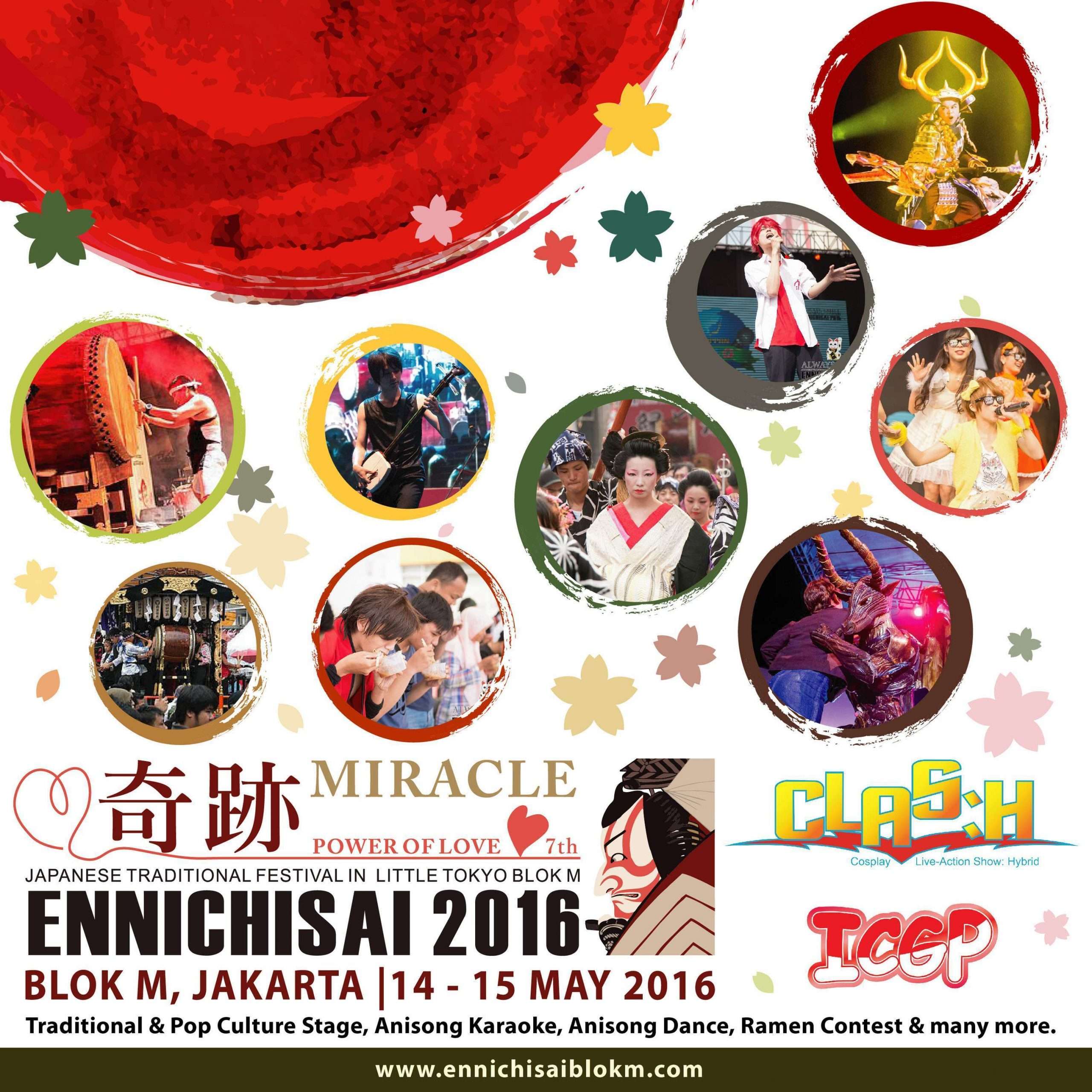 Blok M 2016, Ennichisai 2016 kembali digelar, event tahunan ini masuk ke tahun ketujuh pelaksanaannya. Dengan mengangkat tema Miracle – The Power of Love, Ennichisai akan menyuguhkan konsep unik yang berbeda, akan ada 3 zona giant love board yang akan tersebar di 3 titik di area little Tokyo blok M, pengunjung dapat menuliskan pesan cintanya kepada orang tersayang mereka yang akan di tempelkan di Giant Love Board, setelah itu pengunjung membayarkan uang donasi sebesar Rp 10,000 untuk mendapatkan 1 gelang dari 4 warna yang berbeda. Yang menarik adalah khusus gelang berwarna pink, hanya diperuntukan bagi seseorang yang berstatus single. Sebagian dari uang hasil Love Board ini akan didonasikan kepada korban gempa prefektur kumamoto di Jepang.