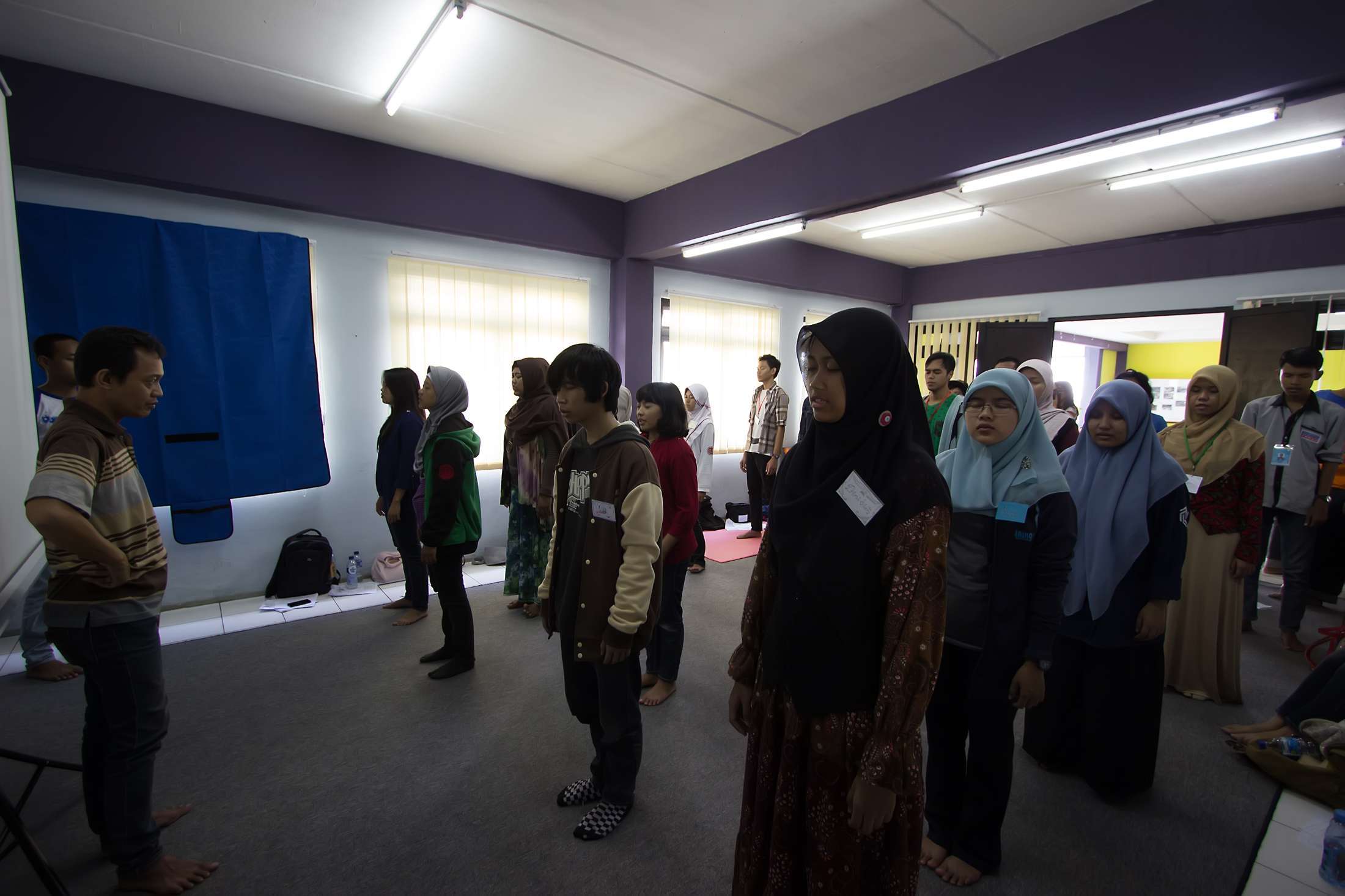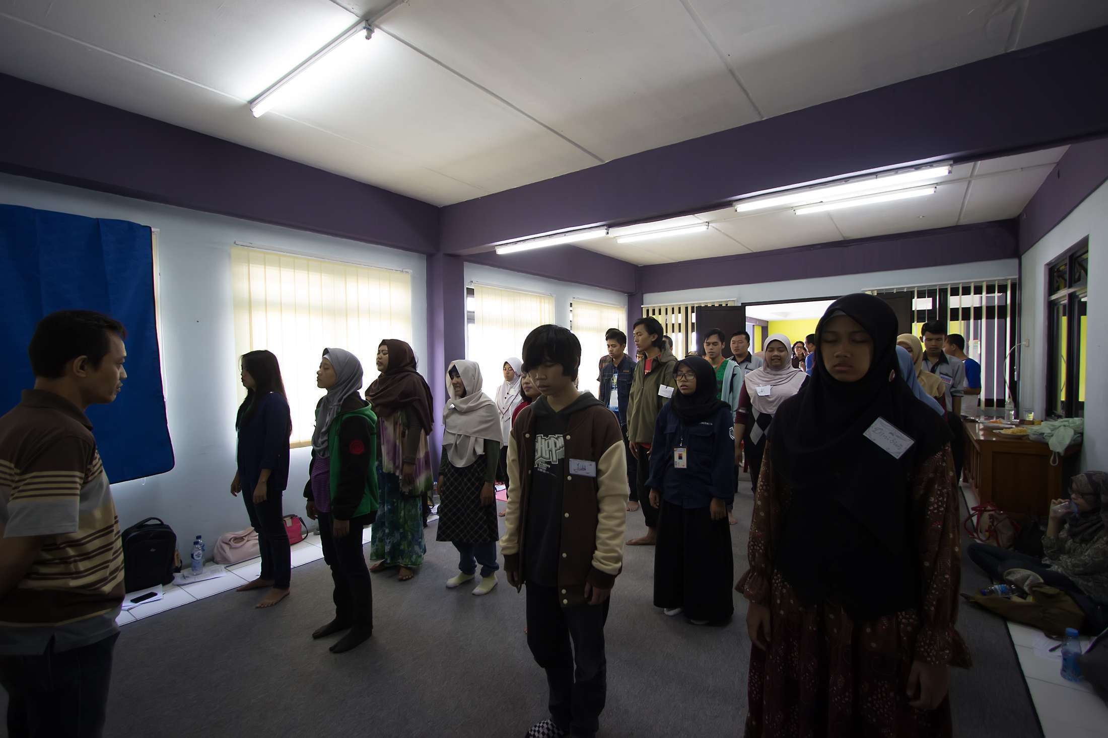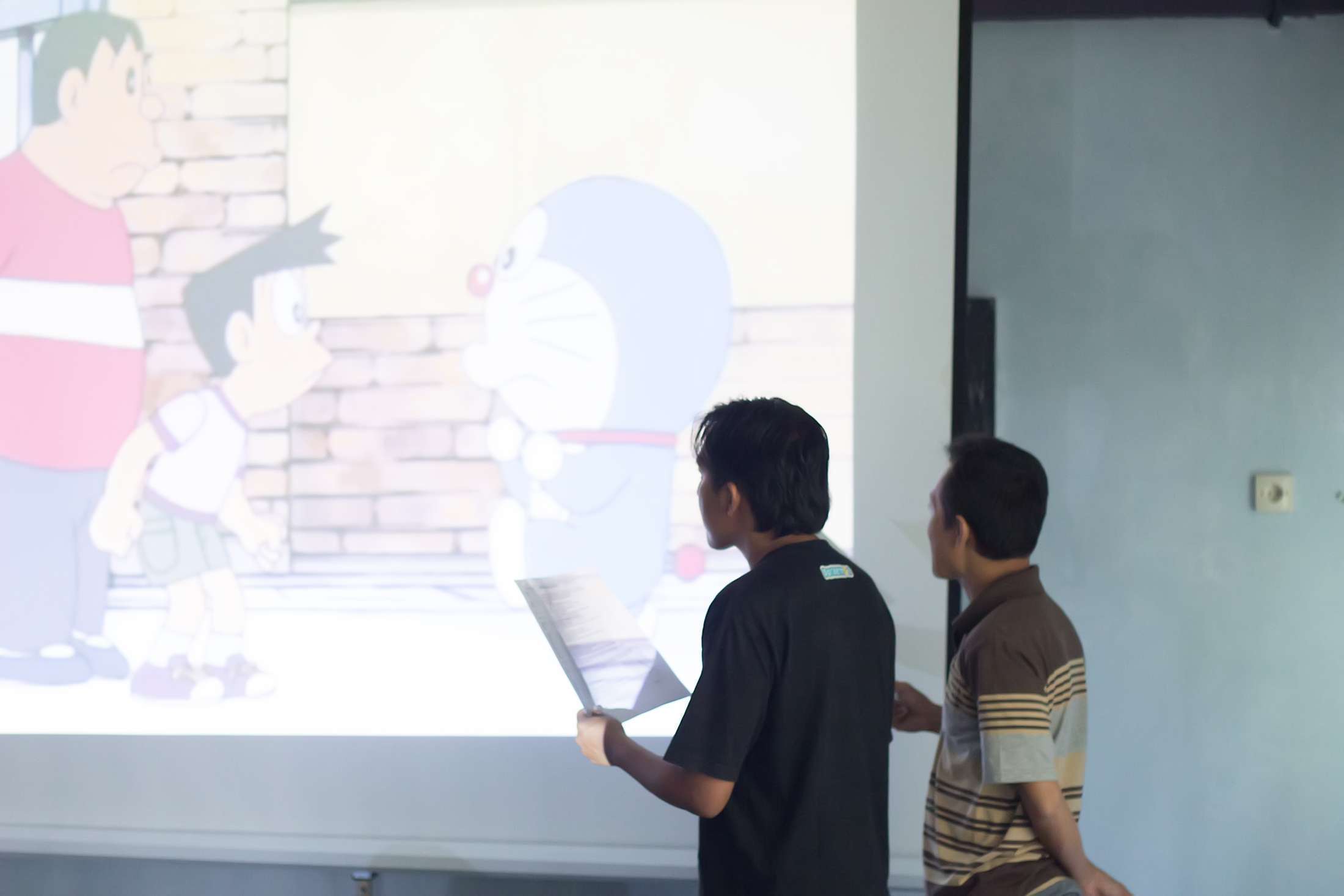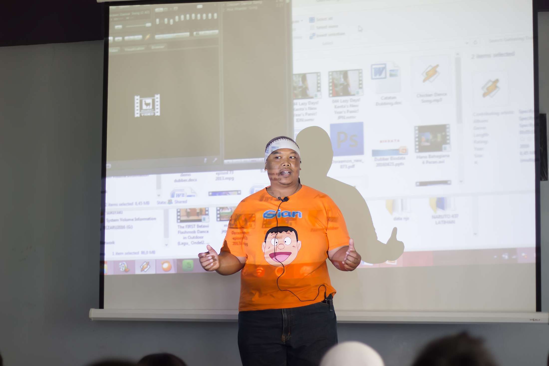 Setelah menerima materi tentang penerjemahan naskah, para peserta diajak untuk melakukan pemanasan sebelum melakukan senam wajah dan olah tubuh. Untuk materi yang satu ini, dibawakan oleh kak Bima Sakti yakni Seiyuu Giant di film Doraemon.