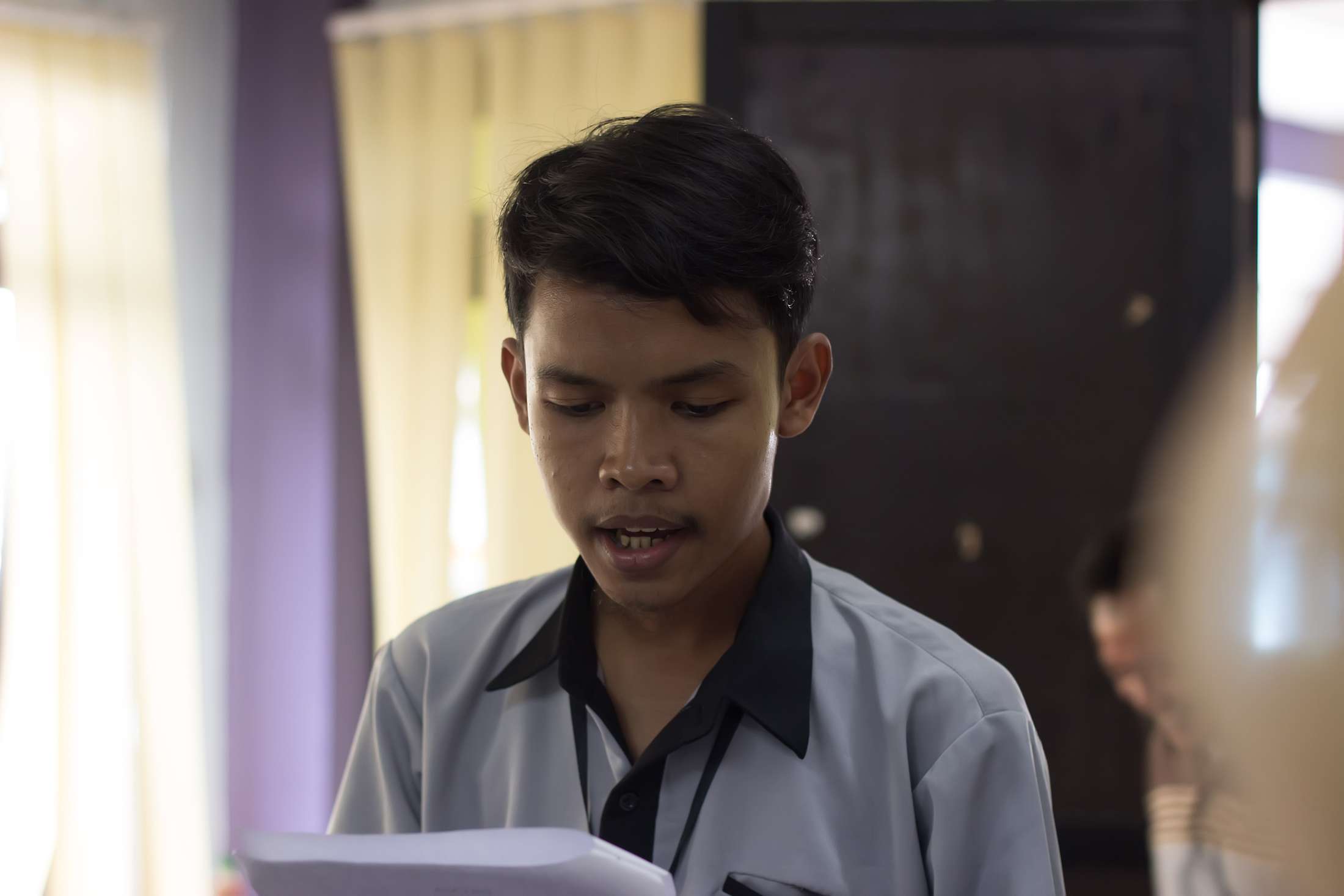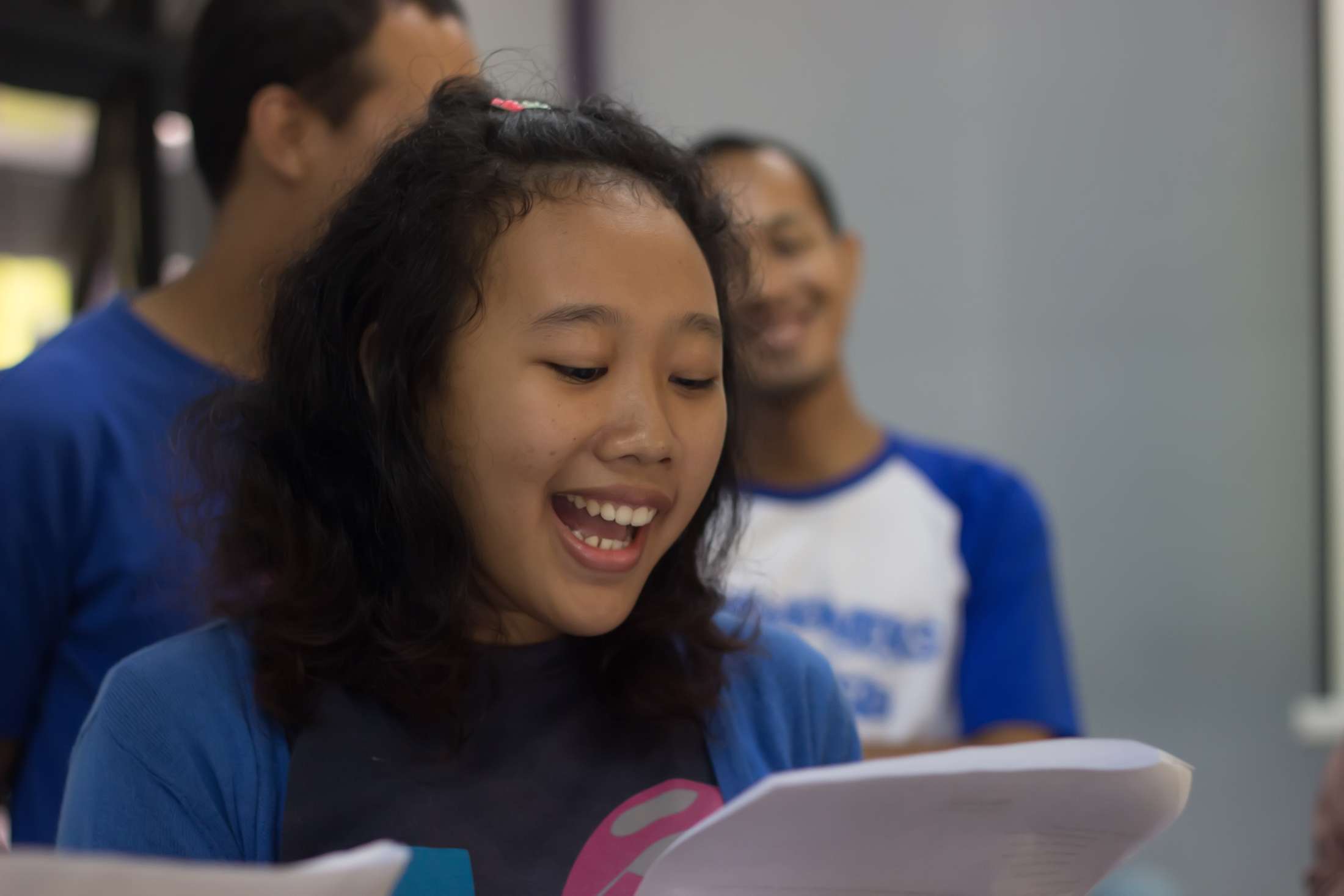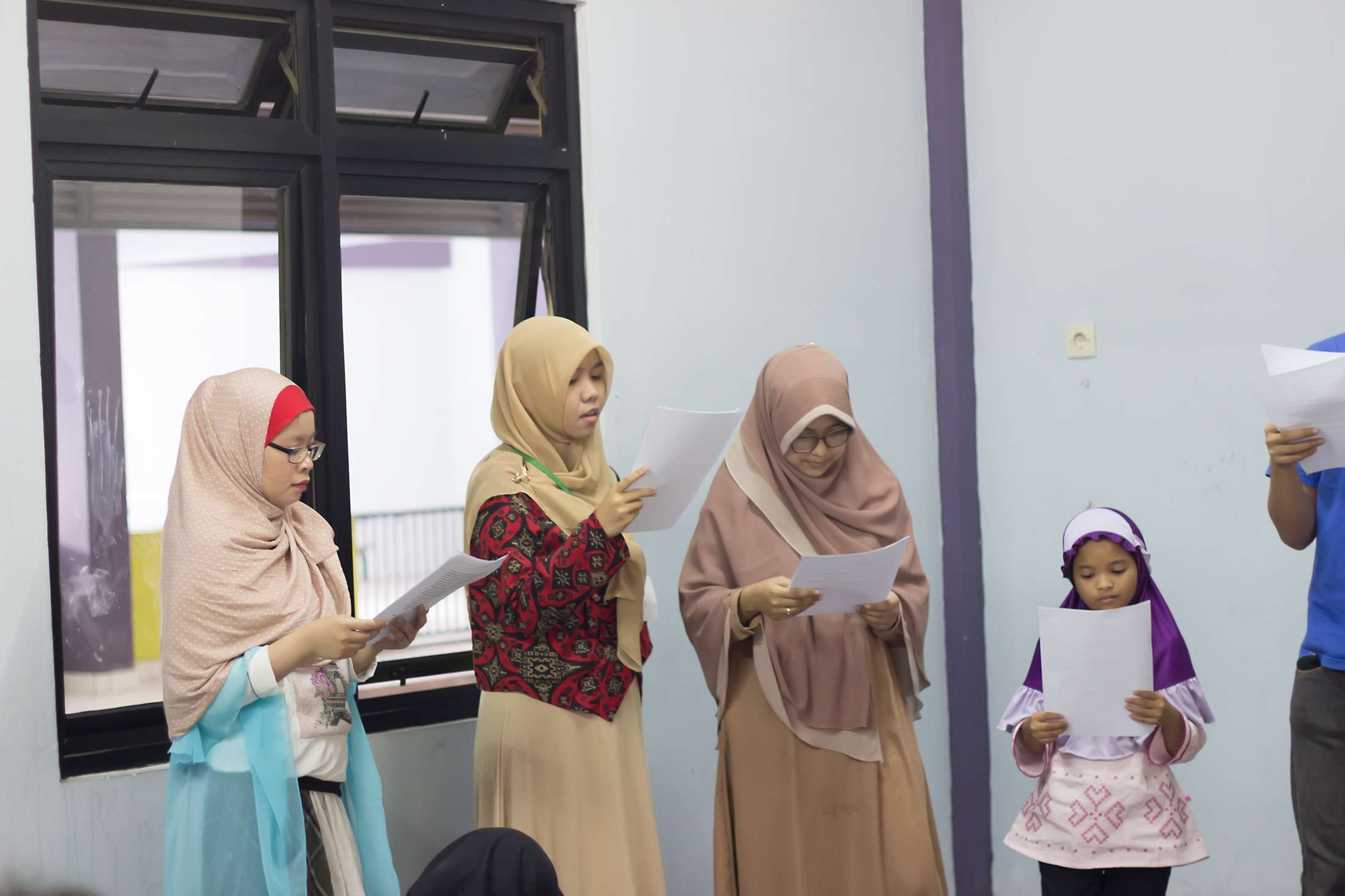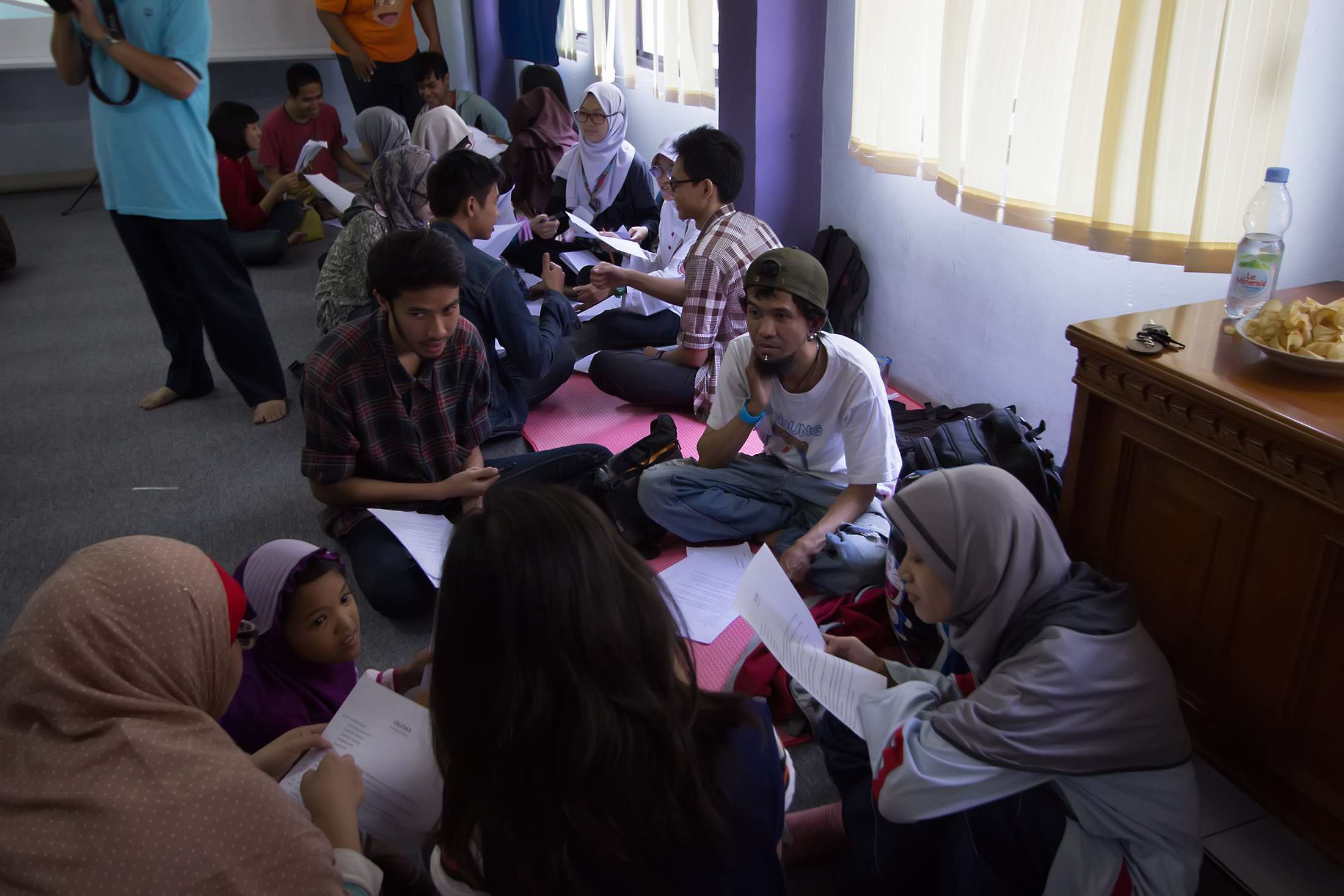 Setelah menerima materi tentang penerjemahan naskah, para peserta diajak untuk melakukan pemanasan sebelum melakukan senam wajah dan olah tubuh. Untuk materi yang satu ini, dibawakan oleh kak Bima Sakti yakni Seiyuu Giant di film Doraemon.