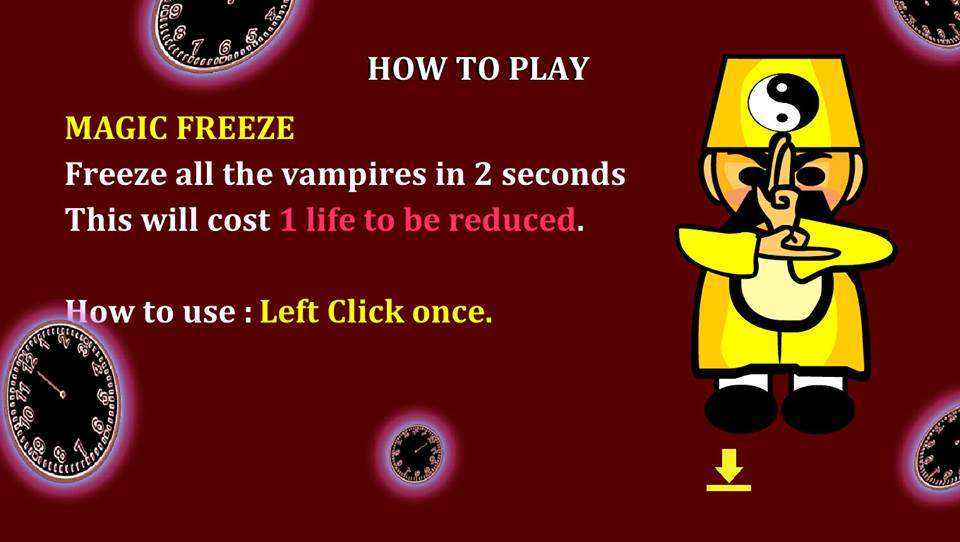 Pada game ini, pemain akan berperan sebagai Suhu Kumis yang ingin memberantas Raja Vampir. Karena itu dia harus mengumpulkan 24 Kertas Mantera Super, dengan itu dia bisa menyentuh tubuh Raja Vampir, Raja Vampir bisa hancur.