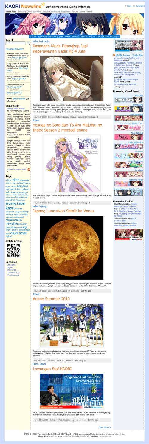 Menarik untuk dicermati bahwa KAORI Newsline sejak awal berdirinya berjalan dengan platform WordPress (mungkin ini sebagian alasan mengapa Newsline terlihat seperti blog), dan mulai 16 Maret 2009 mulai ditenagai tema Atahualpa.