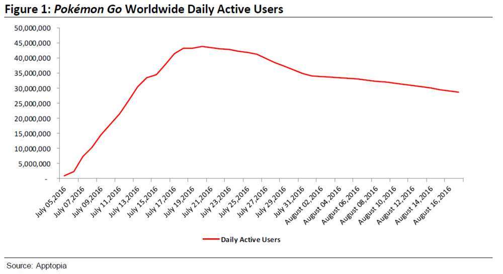 Berdasarkan grafik survei yang dihimpun oleh Apptopia dan dirilis oleh Axiom, jumlah pemain aktif dan tingkat pemakaian para pengguna yang memainkan game tersebut mulai menunjukkan penurunan sejak awal pertengahan Juli. Hal yang sama juga ditunjukkan oleh grafik Google Trends terhadap pencarian dengan kata kunci “Augmented Reality”. Grafik pencarian terhadap topik tersebut perlahan mulai menurun setelah sebelumnya sempat melonjak ketika Pokemon GO dirilis.