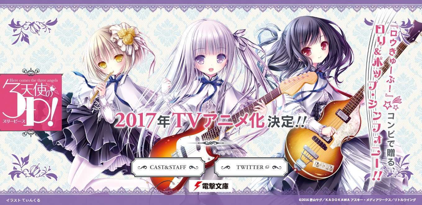 Pada perhelatan “Dengeki Bunko Aki no Saiten 2016” yang digelar di Jepang baru-baru ini, pihak Kadokawa telah mengumumkan bahwasanya novel Tenshi no 3P akan diadaptasi menjadi anime. Jika tidak ada halangan, maka anime ini akan memulai debutnya di Jepang pada tahun 2017 mendatang.