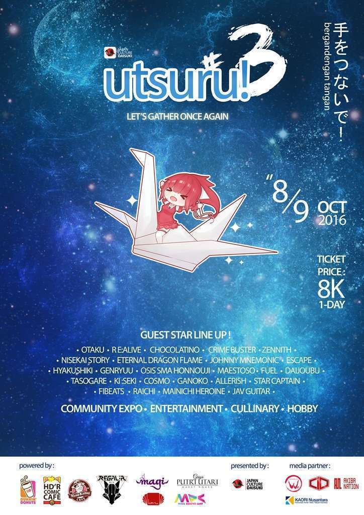 Jangan sampai lewatkan keseruan Utsuru! #3 tahun ini yang akan digelar di Rooftop lt. 3 Mall Dinoyo City Malang, pada 8-9 Oktober 2016!