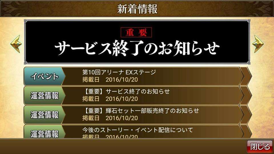 Pada tanggal 18 November 2016 pemain tidak akan lagi bisa membeli in-game currency bernama Kiseki (pyroxene/gem). In-game currency ini digunakan untuk gacha karakter (soul) maupun equipment. Rencananya setelah tanggal 20 Desember 2016 nanti, seluruh layanan game online untuk platform ponsel pintar ini akan ditutup.