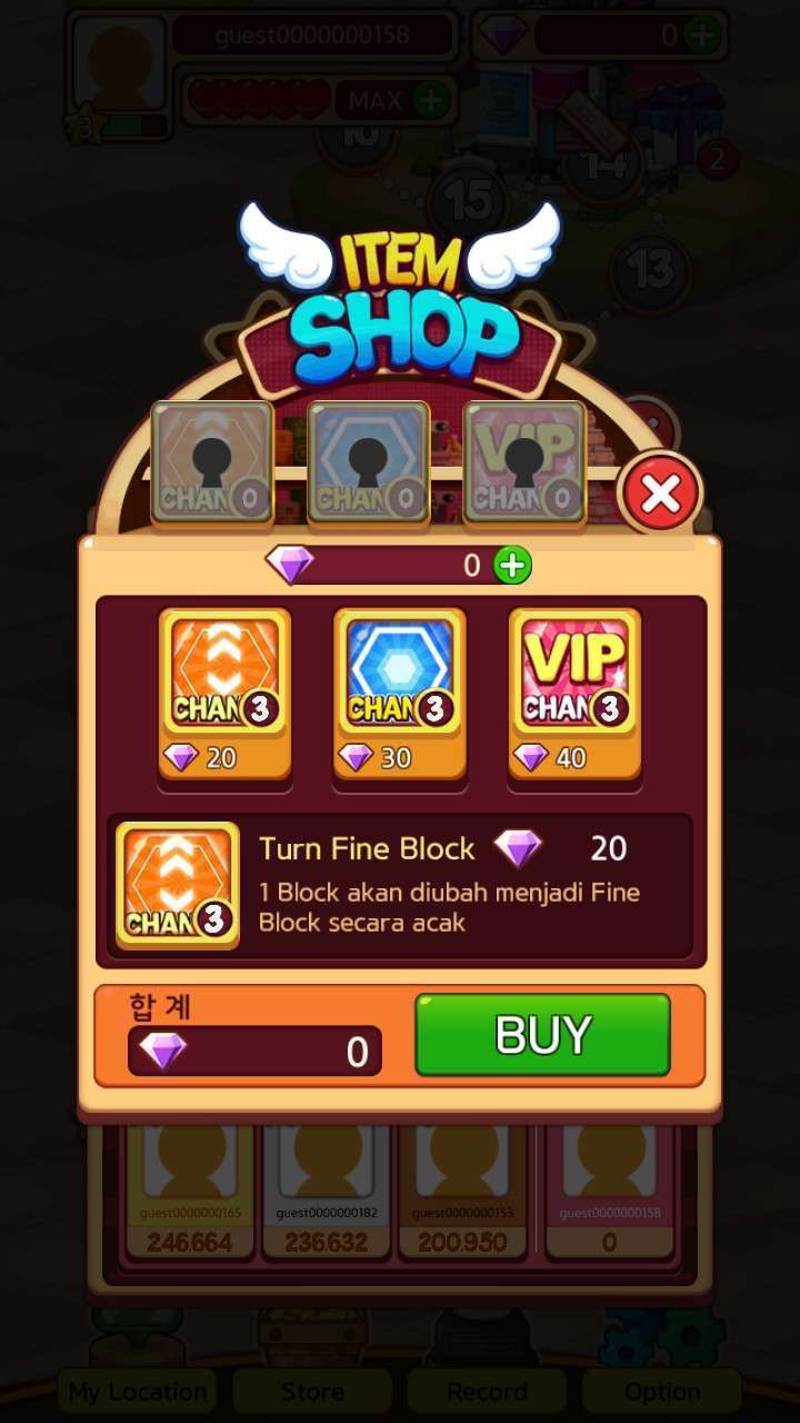 - Menjual 10 buah blok yang sama akan menciptakan sebuah blok VIP yang dapat menghapus semua blok yang sama dalam satu layar