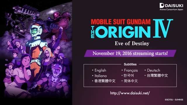 Sebagaimana telah dibertakan sebelumnya, episode keempat dari anime Gundam the Origin akan hadir pada 19 November 2016 mendatang. Dan pada episode yang diberi judul Unmei no Zenya (Fateful Eve) ini, Casval alias Edward, yang kini telah menjadi Char, akan bertemu dengan Lalah Sune, Amuro Ray, dan Profesor Minovsky. Akan diceritakan juga tahap awal pengembangan MS-04 dan RX-78 Gundam, serta peristiwa pertempuran pertama dalam sejarah yang melibatkan Mobile Suit.