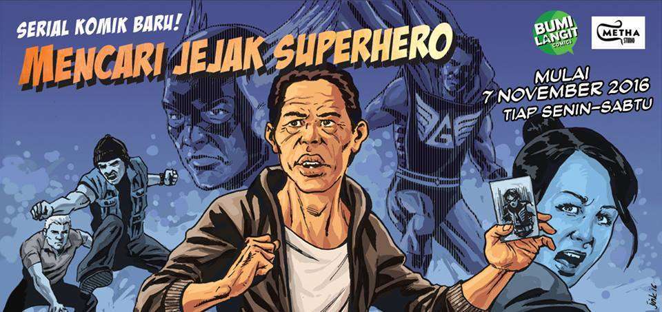 Mencari Jejak Superhero awalnya adalah sebuah komik yang diedarkan secara terbatas pada tahun 2012 lalu. Diterbitkan oleh Metha Studio, sebuah penerbit komik dari Yogyakarta, komik karya Fajar Sungging dan Ahmad Makhfat, dengan ilustrasi dari Jink ini adalah sebuah yang merupakan “Homage” bagi komik-komik superhero klasik seperti Gundala Putra Petir karya Hasmi maupun Godam karya Wid NS.