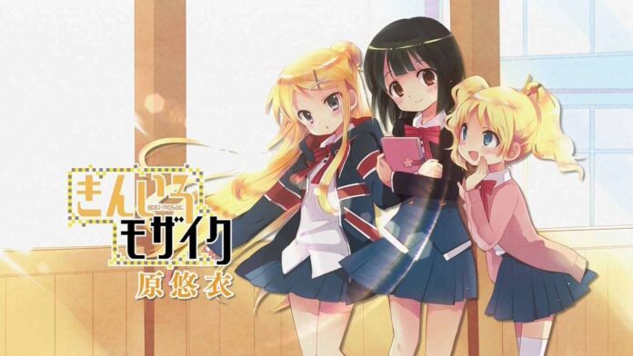 Kiniro Mosaic adalah seri anime yang diadaptasi manga berjudul sama karangan Yui Hara yang diserialisasikan di majalah komik Time Kirara Max terbitan Houbunsha. Sampai berita ini diturunkan sudah dua volume manga telah dirilis.