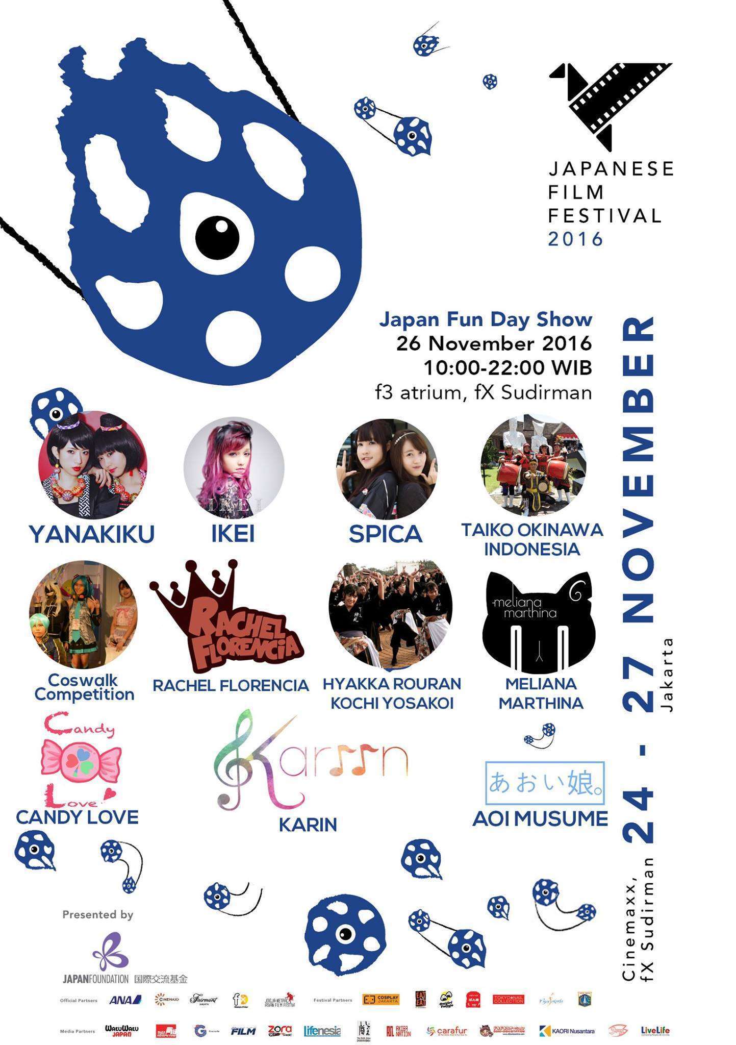 Pergelaran Japan Film Festival tidak hanya dimeriahkan dengan pemutaran film saja. Acara yang diselenggarakan oleh Japan Foundation Jakarta ini juga dimeriahkan dengan kegiatan Japan Fun Day Show yang siap menghibur pengunjung di pusat perbelanjaan fX, Sudirman, Jakarta Selatan.