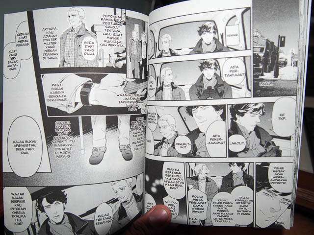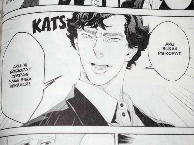 Sesampainya di rumah, saya buka segel dari Sherlock. Kesan novelnya sangat mengena saat saya mengetahui kalau sampul dari komik satu ini memiliki dua lapis layaknya sampul komik maupun novel ringan terbitan Jepang. Lapisan pertamanya benar-benar serasa seperti sampul novel ringan dengan illustrasi berwarna dan di lapisan keduanya walau masih memiliki beberapa gambar hitam-putih, terasa lebih netral seperti lapisan kedua novel ringan dan komik terbitan Jepang pada umumnya.
