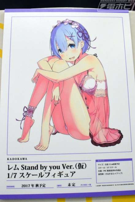 Tak hanya figur 1:1, berbagai figur Rem & Ram lainnya juga turut dipamerkan dan diumumkan dalam acara ini. Salah satunya adalah figur Rem skala 1:7 mengenakan gaun negligee yang konsep ilustrasinya digambar oleh Shinichirou Ōtsuka, sang ilustrator seri novel ringannya. Info lebih detil mengenai figur ini baru akan diumumkan pada tanggal 19 Februari 2017.