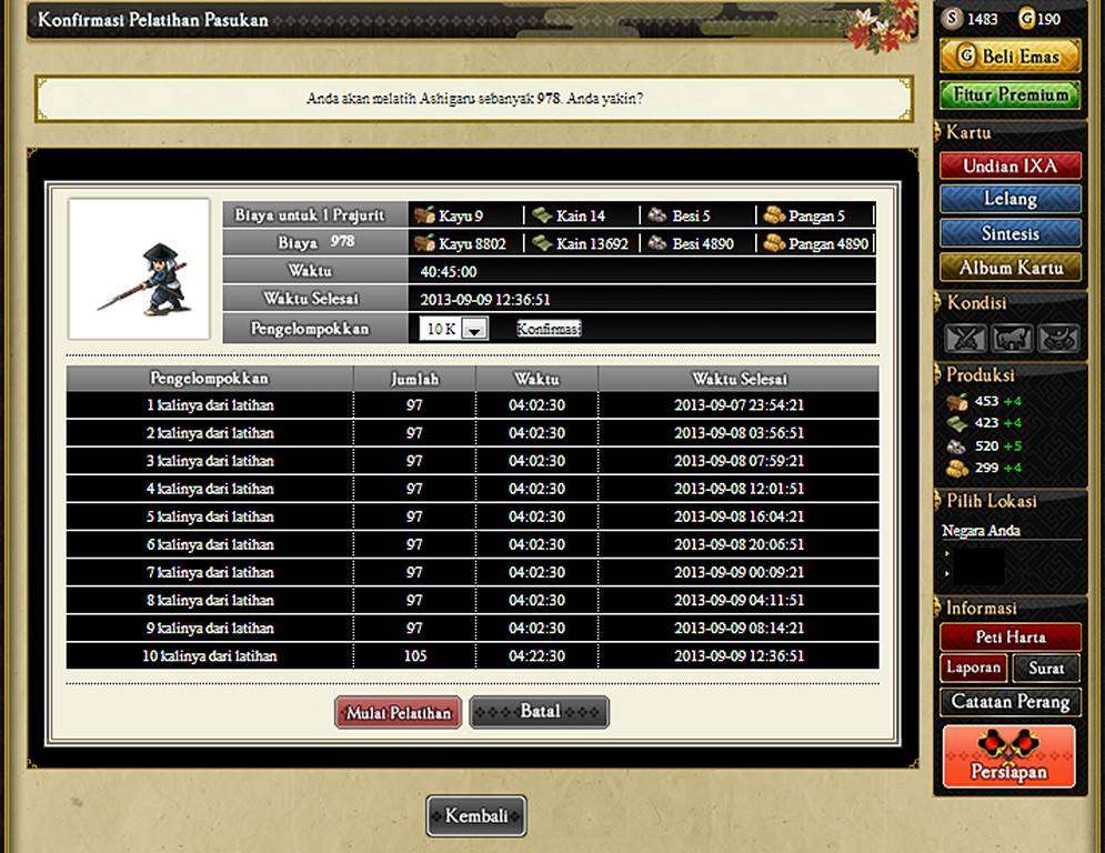Walaupun game ini memerlukan daya pikir strategi yang kuat, cara bermainnya tergolong cukup mudah. Pemain cukup mengikuti siklus 6 harian dari permainan ini. Hari pertama, kumpulkan sumber daya sebanyak-banyaknya dengan membangun fasilitas sumber daya. Hari kedua, gunakan sumber daya tersebut untuk membuat pasukan perang. Selanjutnya, pemain bisa merekrut Jendral bersejarah jepang dengan fitur tiket undian IXA. Di hari keempat, Jendral dan pasukannya dapat kamu latih untuk persiapan perang. Setelah itu, pemain akan dipertemukan dengan pemain lain selama 2 hari terakhir untuk saling menghancurkan benteng lawan. Siklus ini akan terus berulang sampai 6 bulan dan pemenangnya akan diberi hadiah kartu Jendral legendaris yang mewakili tokoh ternama dari era Sengoku, seperti Oda Nobunaga, Tokugawa Ieyasu, dan Date Masamune. Setelah 6 bulan, para pemain akan diperketemukan dengan pemain dari server lain untuk mengadu kekuatan di dunia yang baru.