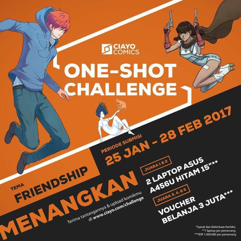 Untuk mengetahui lebih lanjut tentang syarat dan ketentuan CIAYO Comics One-shot Challenge, langsung ke www.ciayo.com/challenge