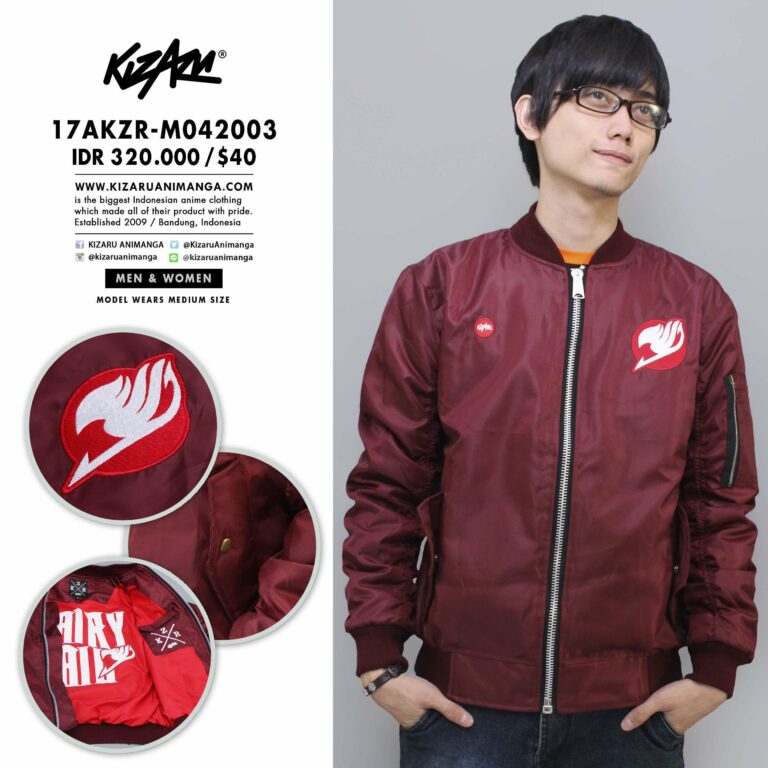 Clothing adalah salah satu bagian yang tak terpisahkan jika membicarakan mengenai pernik anime. Dalam setiap event tak jarang ditemui beberapa penggemar anime yang menambah koleksi busana bernuansa anime kegemarannya. Jika kaorin sedang ingin berencana menambah koleksi anime clothing terbaru, bersiaplah menyambut kehadiran Bomber Jacket terbaru yang dirilis oleh Kizaru Animanga.