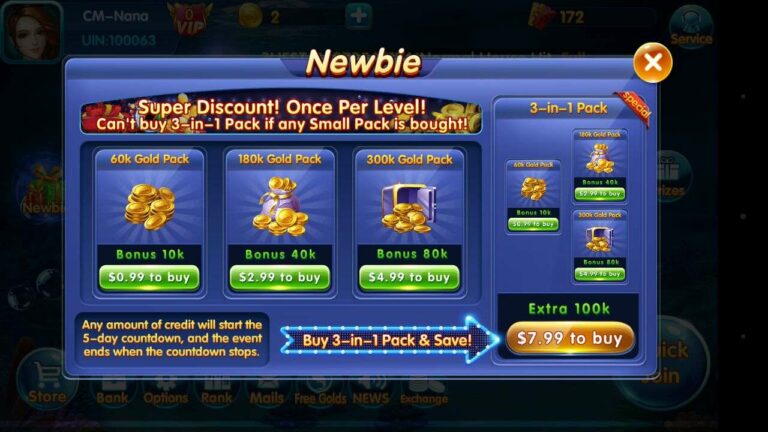 Pemain baru di Crazy Fish? Jangan khawatir karena ada Newbie Package yang bisa player beli di item mall untuk mempermudah permainan.