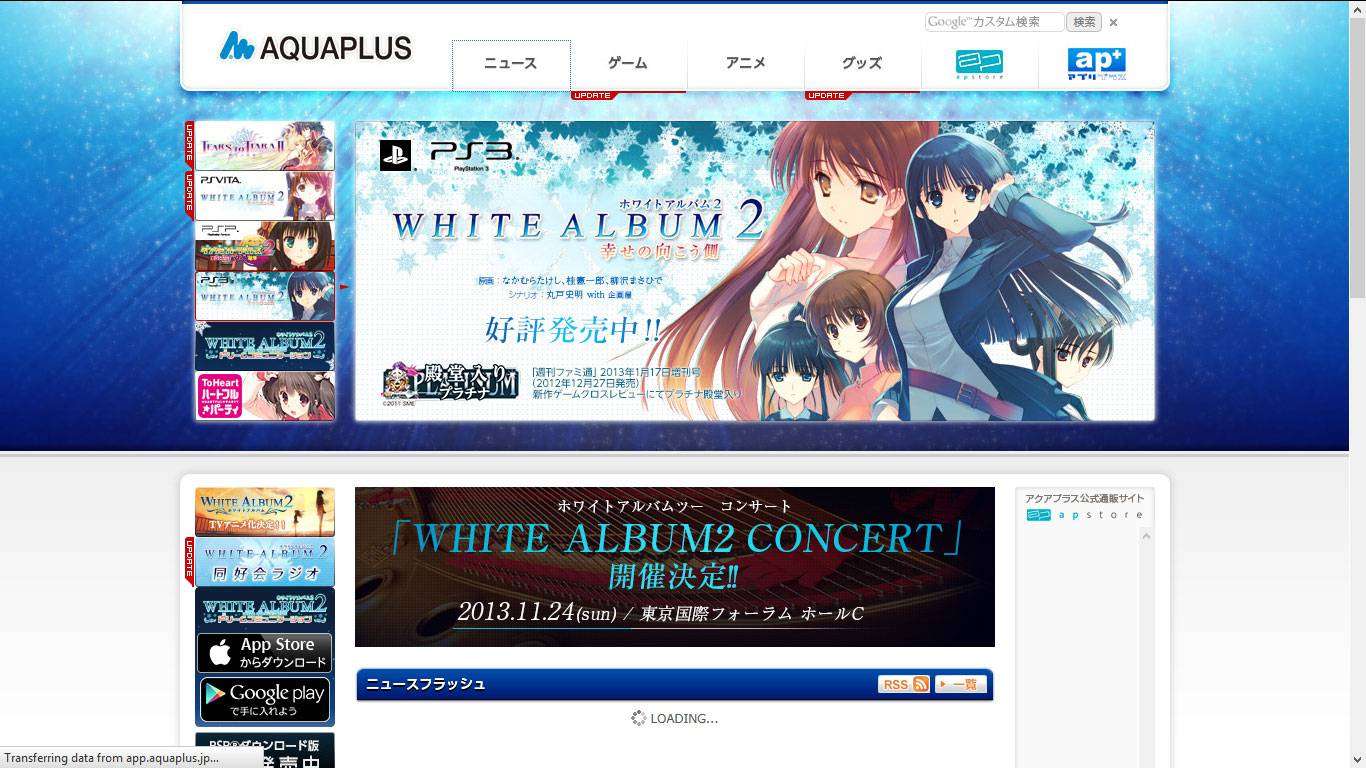 AQUAPLUS, pengembang ToHeart dan White Album secara resmi diakuisisi oleh Yumenosora, perusahaan induk (holding) yang salah satunya membawahi toko belanja Toranoana.