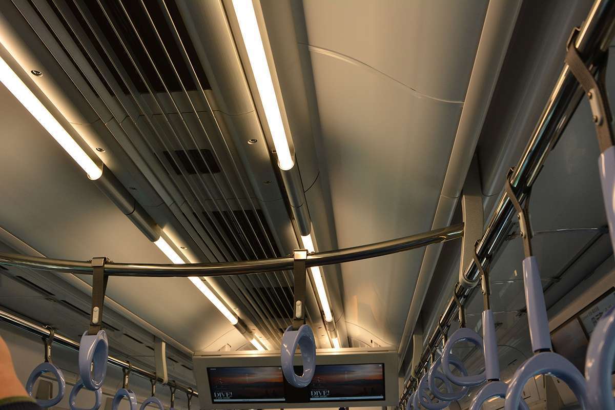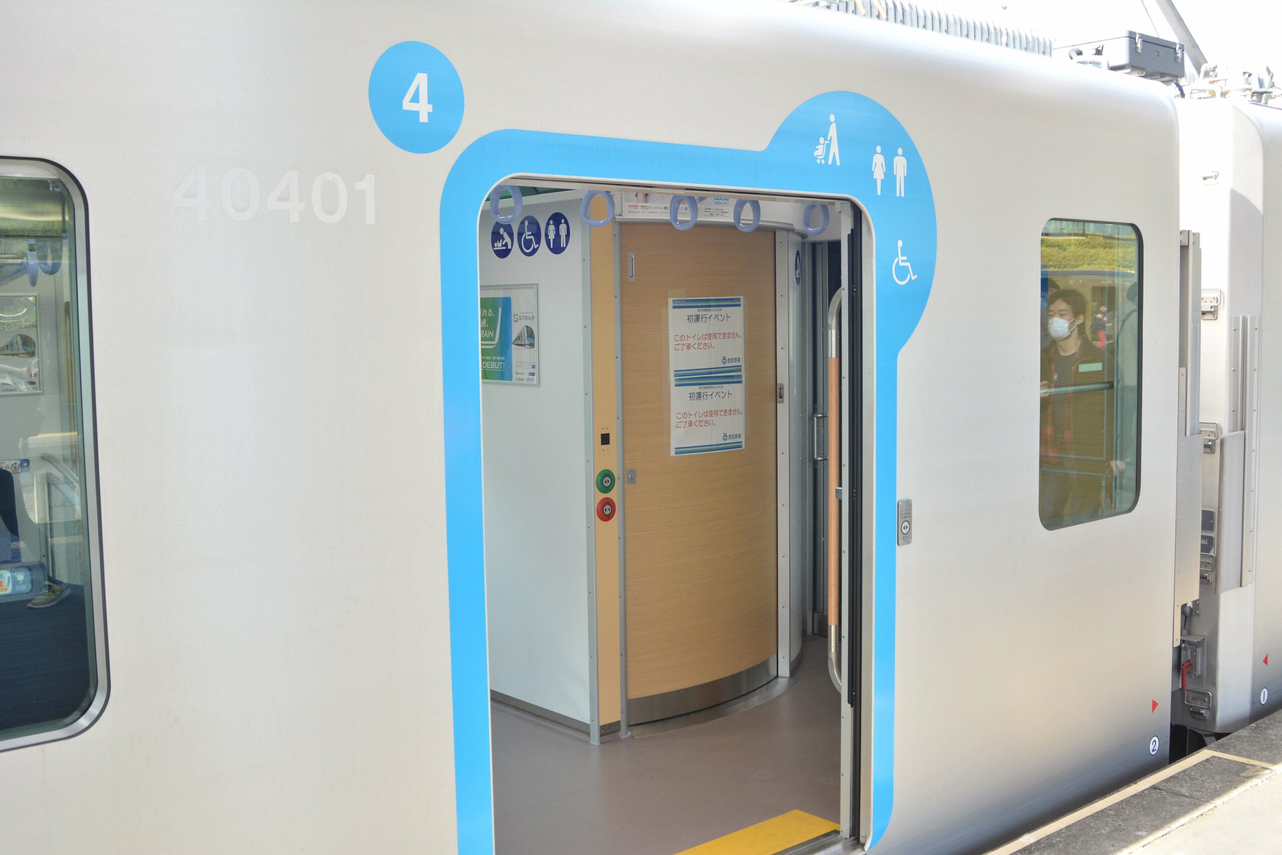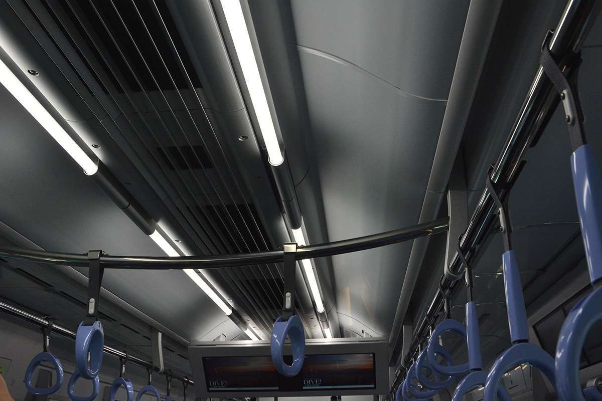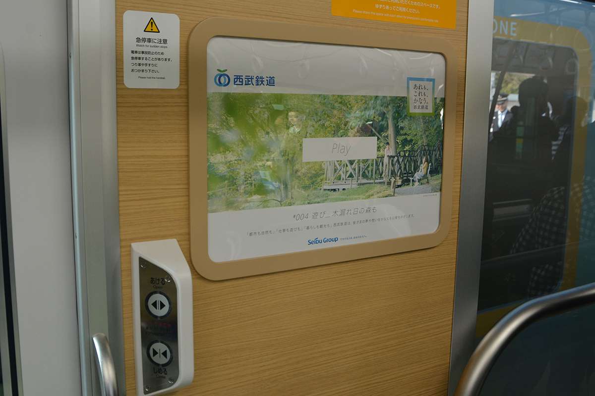 Saat tim KAORI memasuk kereta nomor 1, Seibu sedang mendemonstrasikan pergantian warna pencahayaan interior yang dilakukan pada saat KRL ini merubah layanannya. Contohnya, bila KRL ini beroperasi untuk layanan S-Train maka lampu LED yang terpasang pada KRL ini akan berubah menjadi warna kuning yang hangat.
