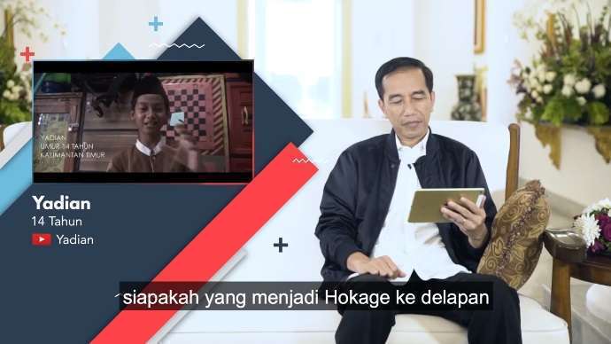 Yang menarik, salah satu netizens yang berpartisipasi dalam program ini, Yadian, 14 tahun, asal Kalimantan Timur sempat bertanya kepada Presiden yang akrab dipanggil Jokowi ini, mengenai siapakah Hokage kedelapan dalam serial anime Naruto. Kontan saja Presiden langsung menjawab bahwanya dirinya tidak tahu siapa Hokage kedelapan. Lebih jauh, Presiden juga menyebutkan bahwa dirinya juga tidak mengenal siapa itu Naruto.