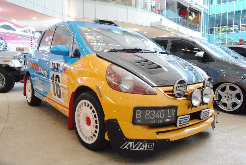 Honda Jazz merupakan salah satu city car terlaris di Indonesia lantaran desainnya yang dinamis dan bodinya yang kompak, namun interior tetap lapang. Mesin mobilnya memiliki keseimbangan antara performa dan konsumsi bahan bakar sehingga relatif mudah diterima oleh berbagai kalangan dari generasi ke generasi. Referensi modifikasi Honda Jazz yang bejibun membuat mobil ini menjadi salah satu objek yang menarik untuk modifikasi, baik dalam rangka menyesuaikan selera maupun keperluan motorsport dan salah satu contohnya ada di event ini. Uniknya, Honda Jazz yang masuk ke event ini datang dari semua generasi dengan model livery yang sama lantaran masih berasal dari satu grup komunitas.
