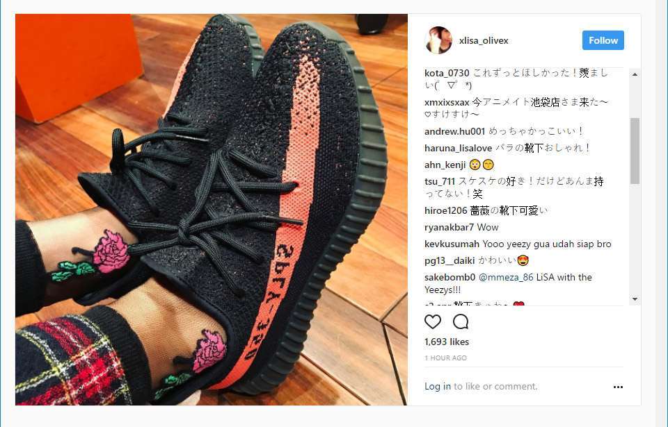 Layaknya sosialita lain, LiSA ternyata ikut membeli sepatu Adidas Yeezy. Sepatu ini dipopulerkan oleh Kanye West dan dikenal memiliki banderol harga yang cukup mahal. Versi original termurahnya bisa didapatkan dengan harga mulai dari 3,5 juta rupiah, sedangkan harga sepatu yang dikenakan oleh LiSA dijual seharga 79.920 yen (9,1 juta rupiah) di sebuah toko online di Jepang.