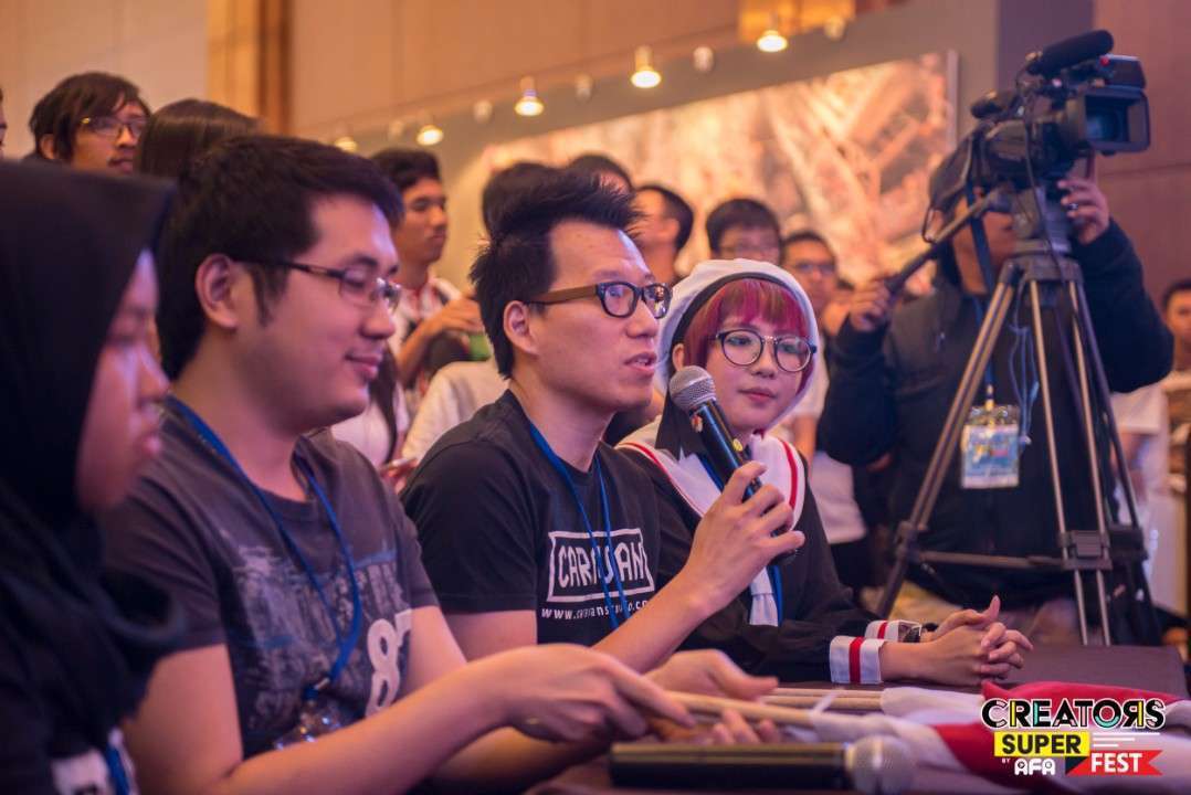 Lalu, bagaimana dengan berbagai acara yang digelar di panggung utama? Creators Super Fest memfokuskan konten acaranya untuk menghadirkan para komikus dan cosplayer dari dalam dan luar negeri ke atas panggung. Para komikus dan ilustrator yang tampil, di antaranya C. Suryo Laksono (Tawur), Dini Marlina (Math), Okita Kung, dan John Hathway. Selain talk show, panggung utama acara ini juga menggelar lomba Art Duel yang mempertemukan para ilustrator tanah air di atas panggung. Selain kreator, penampilan cosplayer tamu (dari Matcha Mei hingga Baozi & Hana), grup musik (duo Redshift, grup idola Shojo Complex, dan DJ Kazu) serta kompetisi cosplay turut memeriahkan panggung ini.