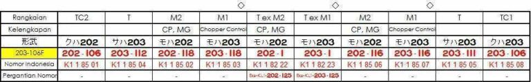 2 unit kereta motor ini pun turun kasta menjadi kereta trailer dan digabungkan dalam rangkaian 203-106F yang berformasi 8 kereta, dengan komposisi awal 4 kereta motor dan 4 kereta trailer (4M4T). Formasi rangkaian juga turut diacak, dengan menggeser kereta trailer (T203-112 dan T203-111) yang semula berposisi di tengah rangkaian, ke sebelah dari masing-masing kereta trailer berkabin (TC’202-106 dan TC203-106) di urutan 2 dan 9, dan meletakkan kereta M’202-1 serta M203-1 di tengah rangkaian (urutan 5 dan 6) untuk memastikan keseimbangan beban yang dihela kereta motor yang hanya 4 unit saja (M’202-118, M203-118, M’202-116 dan M203-116), pada urutan kereta 3, 4, 7 dan 8.