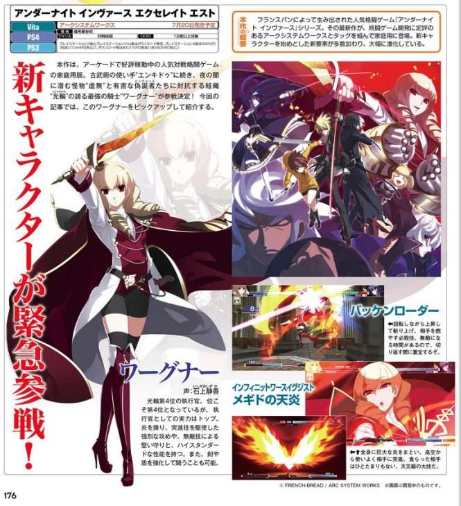 Semenjak pengumuman perilisannya untuk konsol PS3, PS4 dan PS Vita yang bersamaan membawa update dengan elemen, termasuk karakter baru. Erika Wagner akan turut meramaikan arena bertarung di game Under Night In-Birth Exe:Late[st] (UNIST).