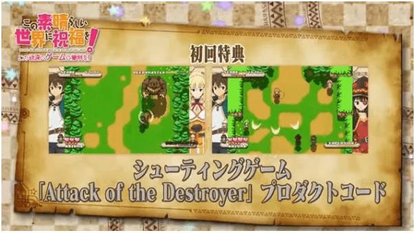Edisi khusus juga menyertakan CD soundtrack dan drama original, sedangkan pembelian awal akan mendapatkan bonus DLC baju handuk mandi dan game shooting Attack the Destroyer. Sebelum game-nya hadir di pasaran, lagu tema dari game tersebut akan dirilis pada 23 Agustus dengan judul “Million Smile” dan “101 Sheep“. Kedua lagu tersebut akan dinyanyikan oleh pengisi suara Aqua dan Megumin.