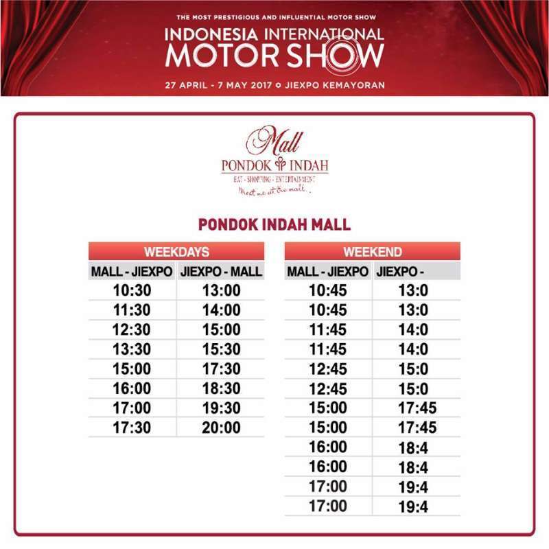 Penyelenggaraaan IIMS berlangsung pada tanggal 27 April-7 Mei 2017 dan shuttle bus mulai beroperasi pada tanggal 28 April-7 Mei 2017, dalam seminggu lebih 3 hari, sedangkan event pop culture, waktu penyelenggaraannya antara 2-3 hari dan itupun pengunjungnya masih tetap tinggi walau dibanderol harga tiket lebih mahal dari pameran otomotif tersebut.