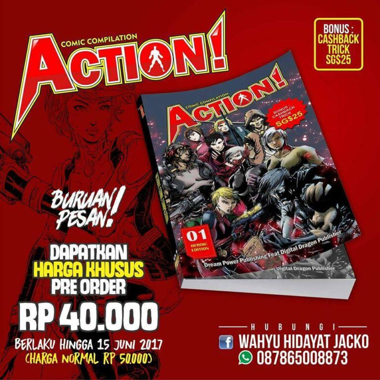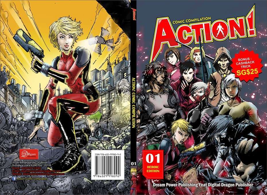 Dicetak oleh Dream Power Publishing, bekerjasama dengan Digital Dragon Publisher, Action – Comic Compilation hadir dengan tebal sebanyak 188 halaman, ukuran A5. Kompilasi komik ini dibanderol dengan harga sebesar 50000 rupiah. Bagi yang melakukan pre-order akan mendapatkan potongan harga dan cukup membayar seharga 40000 rupiah.