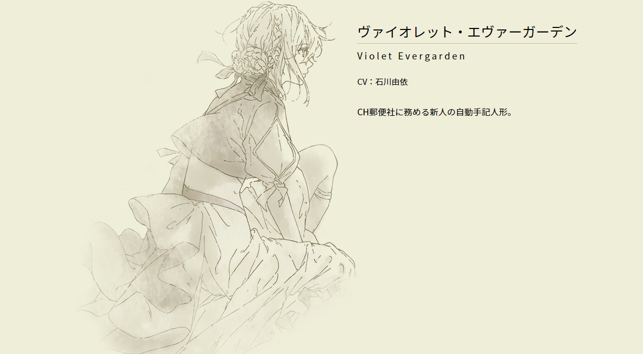 “Aku akan berlari secepat yang aku bisa kemana pun yang diinginkan oleh pelangganku. Akulah sang Auto Memories Doll Service, Violet Evergarden.”
