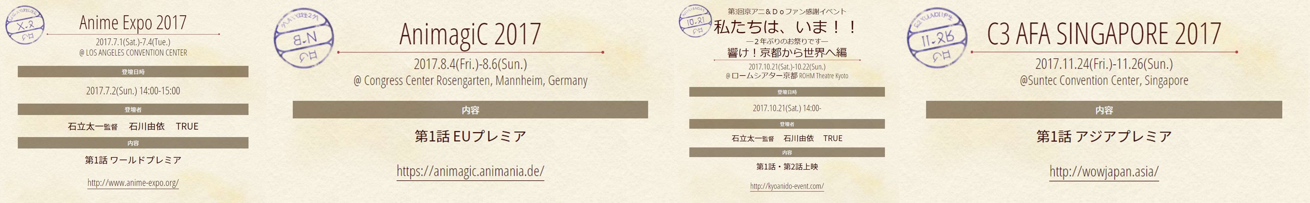 Menjelang penayangannya, seri anime ini juga menggelar acara penanyangan spesial yang akan digelar di beberapa event luar negeri, yaitu: