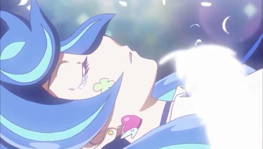 Menjelang penghujung episode, mood kembali berubah dari nuansa kelam yang menegangkan menjadi nuansa yang penuh sendu saat Blue Angel meneteskan air mata dan mulai tidak sadarkan diri. Penggambaran suasana yang penuh haru semakin didukung dengan visual yang menghadirkan sosok Blue Angel tidak sadarkan diri dengan tangisan air mata dan bulu sayap berwarna putih yang menggambarkan suasana jatuhnya seorang malaikat, simbolisasi dari Blue Angel yang kehilangan kesadaran dan melepaskan “kesuciannya” karena kegelapan kartu milik Hanoi Knights yang ia gunakan.