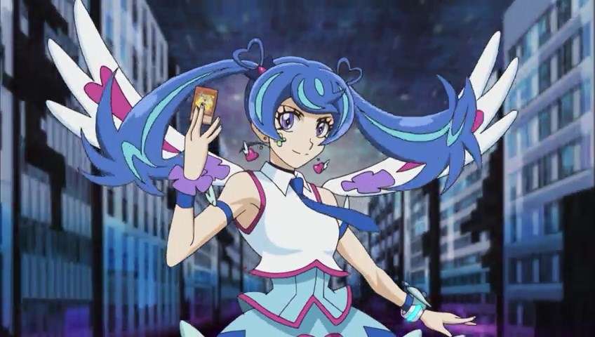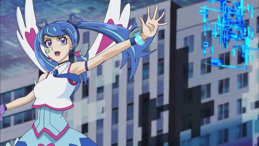 Namun dalam episode ini Blue Angel bermain cukup aman dengan tidak melakukan FTK, meski sudah langsung memberikan cukup banyak damage kepada Playmaker dalam giliran pertama. Di balik senyumannya yang manis, Blue Angel memiliki kombinasi yang mengerikan dengan menggunakan Trickstar Lycoris (Monster Lv 3 / ATK 1600 / DEF 1200), Trickstar Light Stage (Field Spell Card), dan Trickstar Holly Angel (ATK 2000 / Link 2 ke arah bawah kanan dan bawah kiri). Setiap kali Playmaker menambahkan kartu ke tangan (atau dipaksa menambah kartu ke tangan), Lycoris memberikan damage 200 Life Points setiap kartu yang ditambah ke tangan. Setelah itu Trickstar Light Stage memberikan damage tambahan 200 Life Points setiap ada kartu Trickstar yang memberikan effect damage kepada lawan. Trickstar Holly Angel memiliki efek untuk menambah ATK sesuai effect damage yang diterima oleh musuh dan berlaku hanya dalam satu putaran. Dengan kombinasi ini, Blue Angel bisa mengurangi Life Points dari Playmaker sambil menambah ATK dari Holly Angel, sebuah kombinasi yang cukup mengerikan.