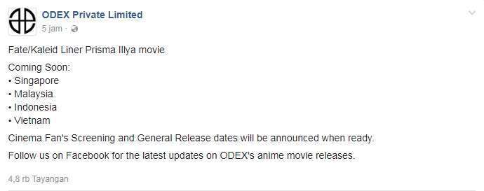 Kini melalui akun Facebooknya, pihak ODEX Private Limited mengumumkan akan membawa film ini ke Indonesia dan sejumlah negara Asia Tenggara lainnya seperti Singapura, Malaysia, dan Vietnam.