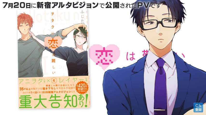 Otaku ni Koi wa Muzukashii (Love is Hard for an Otaku), komik karya Fujita ini akan diadaptasi menjadi anime. Dengan diproduksi oleh A-1 Pictures, anime ini rencananya akan ditayangkan di Jepang melalui program Noitamina di Fuji TV. Belum ada informasi lebih lanjut mengenai kapan kiranya anime ini mulai dirilis.