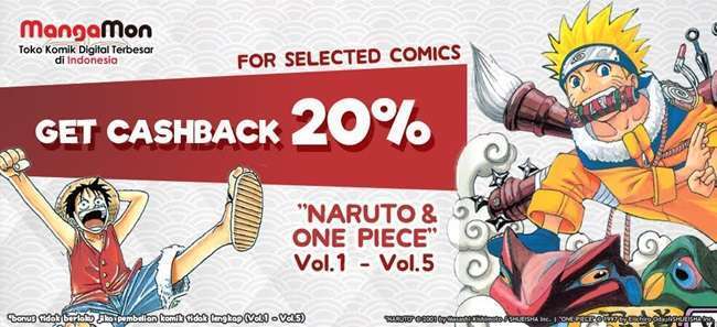 Merayakan terbitnya komik-komik best seller versi digital, MangaMon juga mengadakan promo Cashback sebesar 20% kepada user yang telah membeli komik Naruto atau One Piece dari volume 1 s.d volume 5. Promo ini berlaku dari tanggal 18 Juli s.d 31 Juli 2017. Info lebih lengkap tentang promo ini bisa dilihat melalui tautan berikut ini.